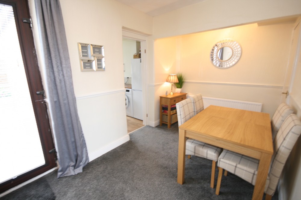 Dining Area - 14'9 x 7'9 (4.50m x 2.36m) - Fully carpeted dining area comprises of neutral decor, multiple power points, radiator & under stairs storage cupboard.